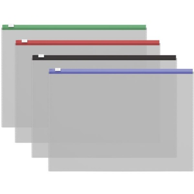 Папка-конверт на молнии A4 (335х238 мм), карман для визиток, молния ассорти, прозрачная, 0,15 мм, BRAUBERG "Smart", 221856