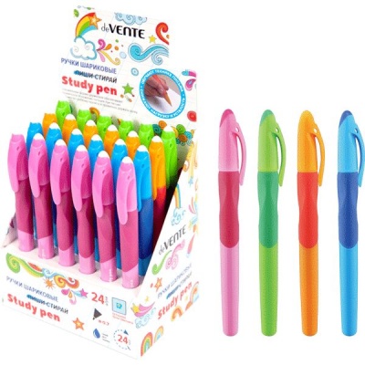 Ручка пиши-стирай шариковая, синяя, 0.7 мм, линия 0.4 мм, спец. резин грип, deVENTE Study Pen (для левшей)