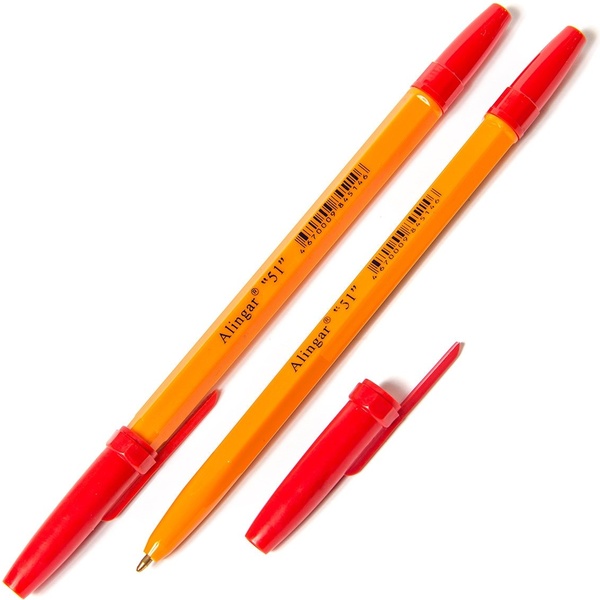 Ручка шариковая красная, 1.0 мм, узел Standard, шестигранная, ALINGAR 51 (оранжевая)