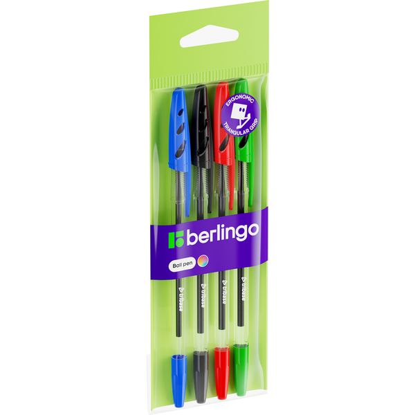 Ручки шариковые, набор 4 шт./4 цв., 1.0 мм, Berlingo Tribase