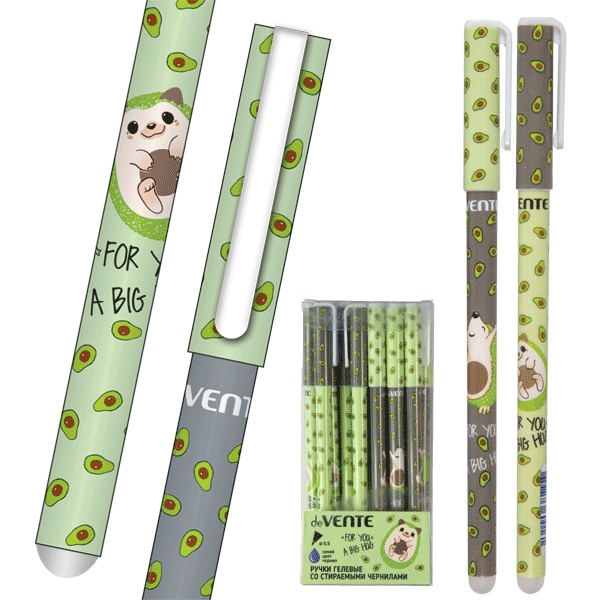 Ручка "пиши-стирай" гелевая, синяя, 0.5 мм, линия 0.4 мм, ластик, deVENTE Avocado Hug (2 дизайна)