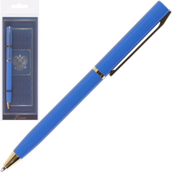 Ручка шариковая подарочная FIORENZO Символика, поворотный м-м, цв. корпуса синий/золото, 0.7 мм, синяя