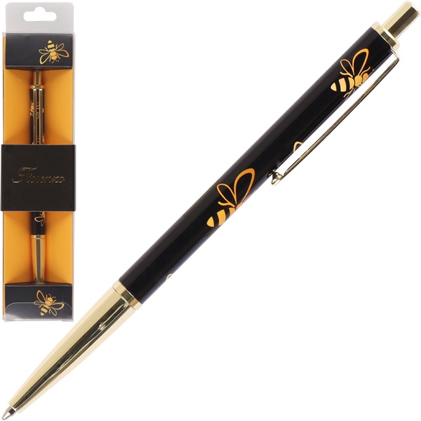 Ручка шариковая подарочная FIORENZO Busy Bee, нажимной м-м, цв. корпуса черный с дизайном, 0.7 мм, синяя