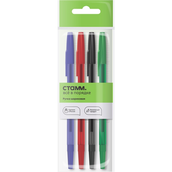 Ручки шариковые, набор 4 шт./4 цв., 0.7 мм, СТАММ 049