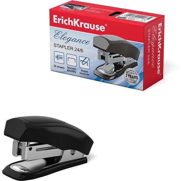 Степлер mini № 24/6 до 20 л. ErichKrause Elegance, встроен. антистеплер, черный