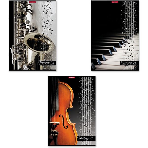 Тетрадь для нот A4, 24 л., на скобе, ErichKrause Мелодия, вертикальная, 3 дизайна
