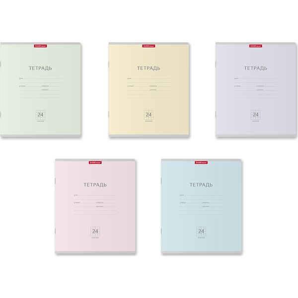 Тетрадь 24 л., клетка, 60 г/м2, обл. мел. картон, ErichKrause Классика Pastel_ассорти 5 цветов