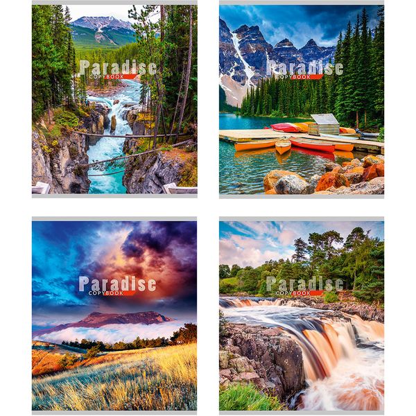 Тетрадь 96 л., линия, 60 г/м2, обл. мел. картон, Prof-Press Земной рай_4 дизайна