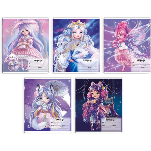 Тетрадь 12 л., клетка, 60 г/м2, обл. мел. картон, выб. лак, ФЕНИКС+ Сказочные принцессы_ассорти 5 дизайнов