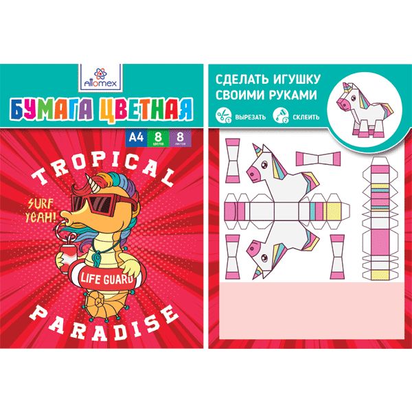 Бумага цветная офсетная 8 цв., 8 л., A4, 1-ст., 65 г/м2, в папке, Бланкиздат Джунгли